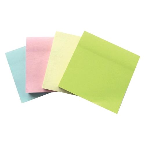 - 100% recycled Self-adhesive repositionable notes that will stick on most surfaces Assorted packs of blue, green, yellow and pink 74gsm paper