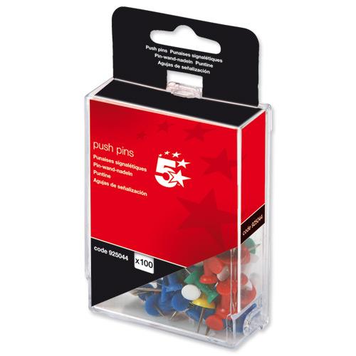5 Star Office Push Pins Assorted Opaque [Pack 100]